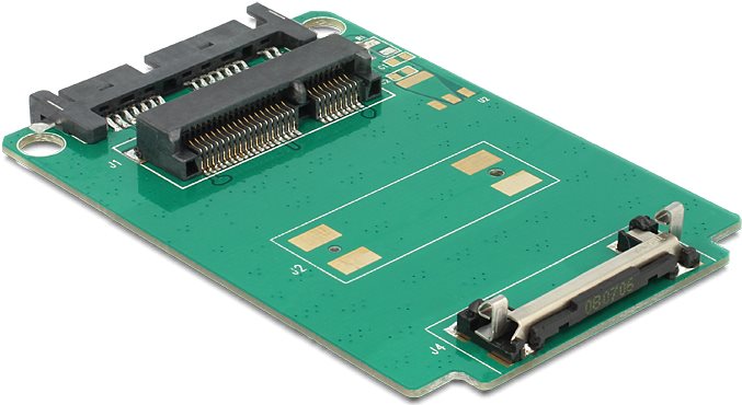 An diesen Delock Konverter können Sie eine mSATA SSD im full size Format anschließen und diese als Ersatz für eine 1.8" Festplatte verwenden. Der Konverter kann intern über die SATA 16 Pin Schnittstelle in Ihr System eingebunden werden.