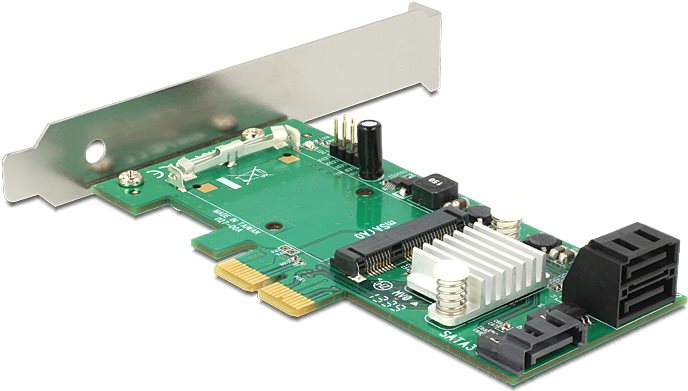 DeLOCK Hybrid 3 x internal SATA 6 Gb/s + 1 x internal mSATA - Speichercontroller (RAID) - 4 Sender/Kanal - SATA 6Gb/s / mSATA - 600MBps - RAID 0, 1 - PCIe 2,0 x2 (89371)