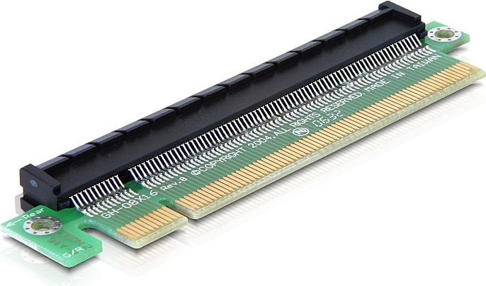 Die PCI Express Extension Riser Karte von Delock dient zur Verlängerung einer x16 PCI Express Card. Dazu stecken Sie Ihre PCI Express Karte auf die Riser Karte und diese dann auf das Mainboard.