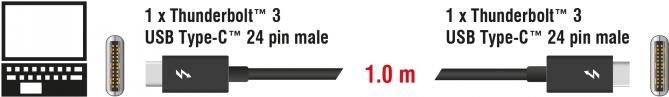 Dieses Thunderbolt 3 Kabel von Delock ist universell einsetzbar und vereint alle Vorteile der Thunderbolt 3 Schnittstelle. Es ermöglicht den Anschluss unterschiedlicher Geräte, wie z. B. externer Gehäuse, Monitore, Card Reader und Docking Stationen, über einen Thunderbolt 3 Port eines PCs oder Notebooks. Das Kabel ermöglicht Datenübertragungsraten von bis zu 20 Gb/s und unterstützt sowohl die Übertragung von USB als auch von Displayport, PCI Express und Ethernet Daten. So ist z. B. der Anschluss eines 5K oder eines 4K Displayport Monitors möglich, ebenso der Anschluss von USB 3.1 Gen 2 Geräten. Auch die Stromversorgung von angeschlossenen Geräten mit einer Leistung bis zu 100 W ist möglich.