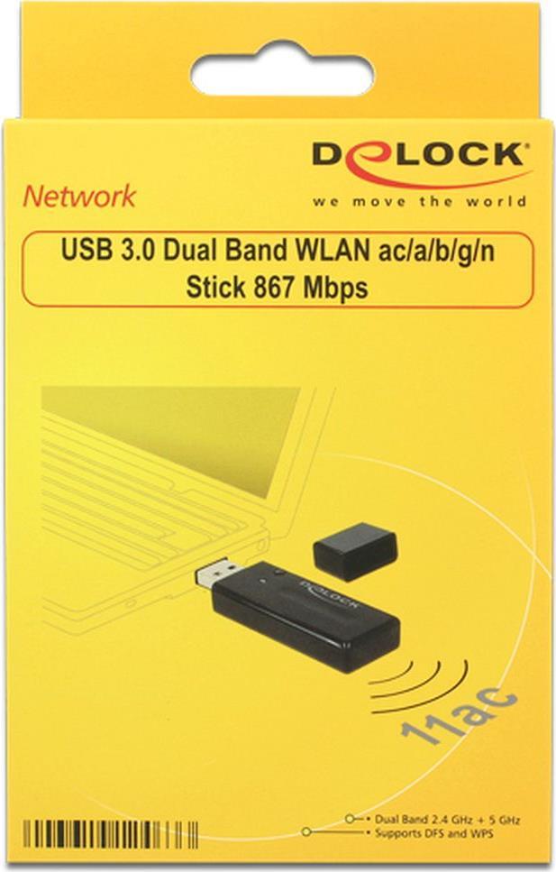 Delock USB 3.0 Dual Band WLAN ac/a/b/g/n Stick - Netzwerkadapter - USB 3.0 - 802.11ac - Schwarz