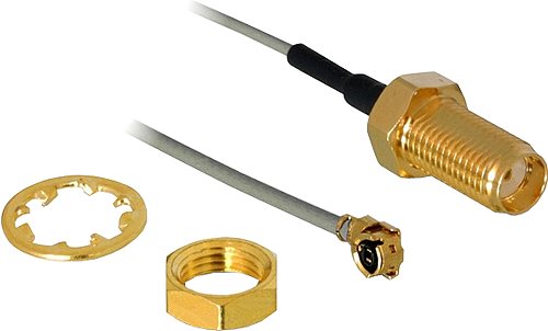 Dieses Anschlusskabel können Sie an Ihr HF (Hochfrequenz) Modul z.B. WLAN stecken, um einen SMA Anschluss zu erhalten. Somit können Sie nun eine SMA Antenne an das Modul anschließen, um ein HF Signal zu senden und zu empfangen.