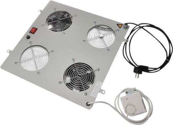 Die Dachlüftereinheiten sind geeignet für alle Netzwerkschränke der Unique & Varioflex-N Serie, sowie alle Netzwerk- und Serverschränke der Dynamic Basic Serie. Die Installation im Dachmodul des Schrankes kann schnell und einfach vorgenommen werden. Ein Schalter, sowie ein regelbares Thermostat, sorgen für optimale Anpassungsmöglichkeiten. Das Modell ist erhältlich in den Standardfarben Grau (RAL 7035), sowie Schwarz (RAL 9005), wahlweise mit zwei oder vier Lüftern ausgerüstet.