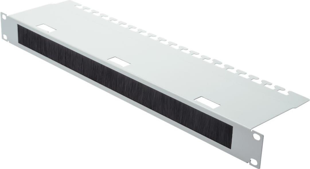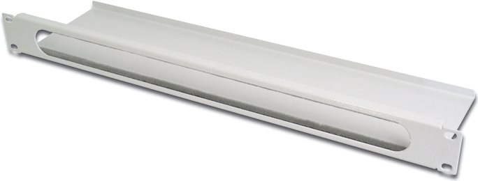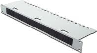 Die Kabeldurchführungspanel werden an den 483 mm (19)-Profilschienen befestigt. Die Öffnung verfügt über eine Bürstenleiste, welche das Beschädigen von durchgeführten Rangierkabeln verhindert. Eine Rückseitige Ablagefläche mit Kabelfixierungsbügeln für bis zu 24 Kabel rundet das Design der Panel ab und ermöglicht somit ein optimales Kabelmanagement in Ihrem 483 mm (19) Netzwerk- oder Serverschrank.