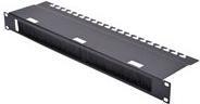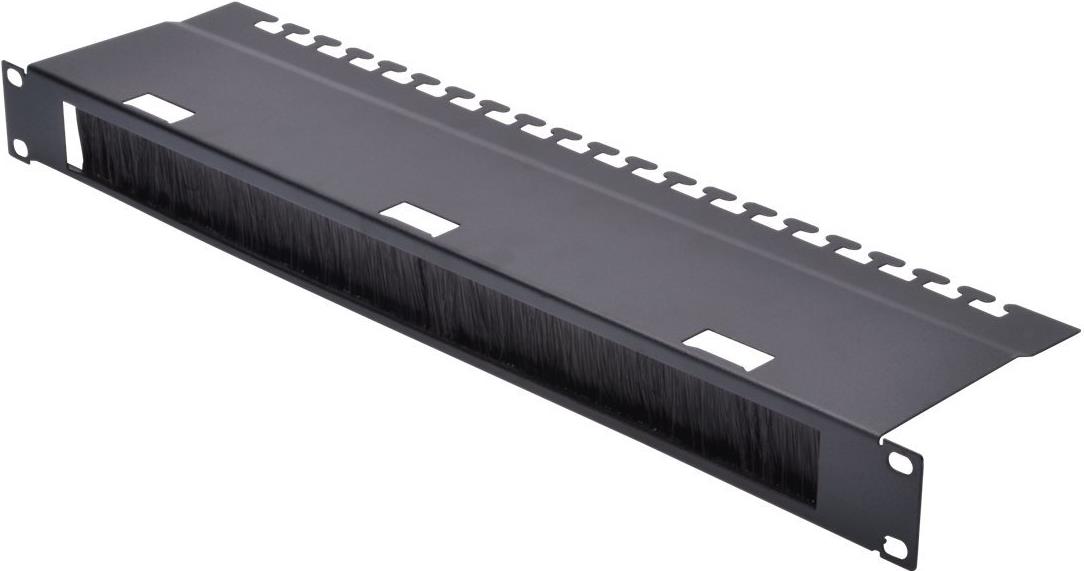 Die Kabeldurchführungspanel werden an den 483 mm (19)-Profilschienen befestigt. Die Öffnung verfügt über eine Bürstenleiste, welche das Beschädigen von durchgeführten Rangierkabeln verhindert. Eine Rückseitige Ablagefläche mit Kabelfixierungsbügeln für bis zu 24 Kabel rundet das Design der Panel ab und ermöglicht somit ein optimales Kabelmanagement in Ihrem 483 mm (19) Netzwerk- oder Serverschrank.