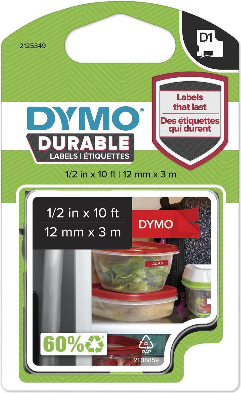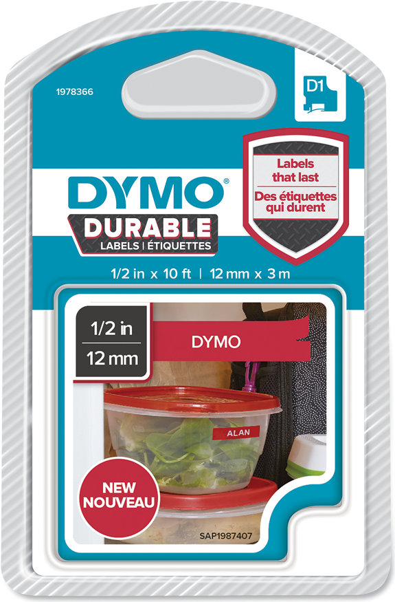 Dymo D1 - Selbstklebende Etiketten - Weiß auf Rot - Rolle (1,2 cm x 3 m) 1 Rolle(n) (1978366)