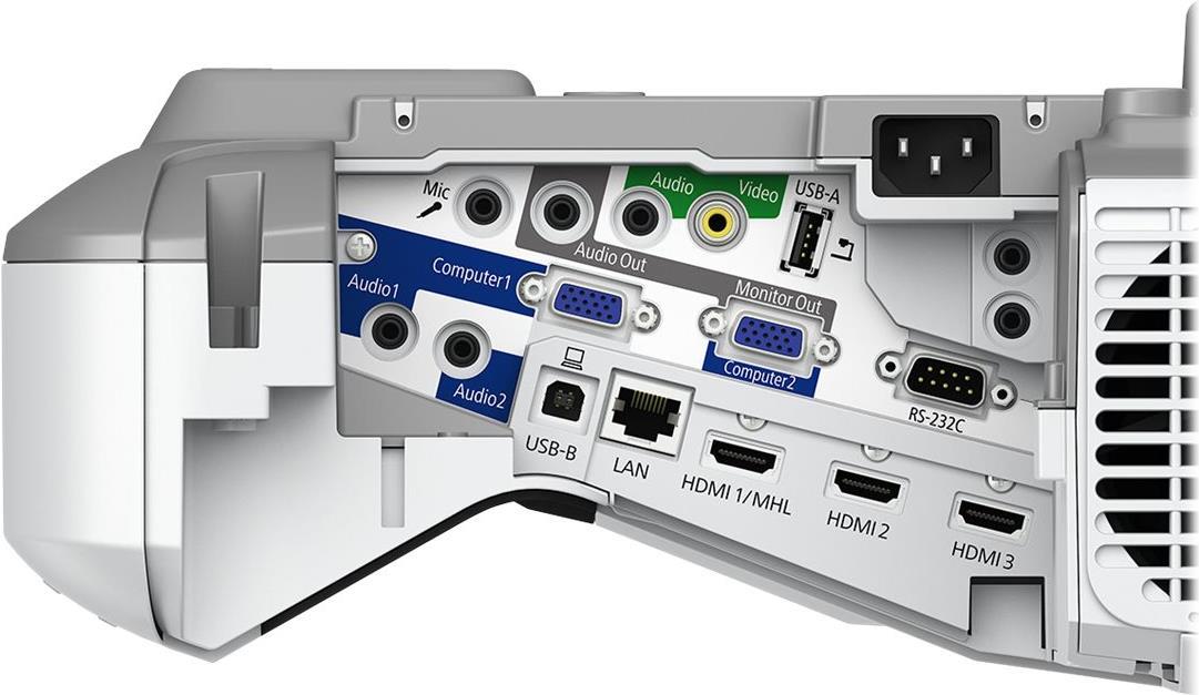 | Schnittstellen | 1 x Component-Video-/RGB-Eingang - HD D-Sub (HD-15), 15-polig 1 x Composite-Video-Eingang - RCA 1 x Mobile High-Definition Link (MHL) / HDMI 2 x HDMI-Eingang - 19-poliger HDMI Typ A 1 x USB 2.0 - 4-polig USB Typ A 1 x USB 2.0 - 4 pin USB Type B 3 x Audio Line-In - mini-phone stereo 3.5 mm 1 x Mikrofon 1 x Audio Line-Out - mini-phone stereo 3.5 mm 1 x seriell RS-232C - D-Sub (DB-9), 9-polig 1 x Netzwerk - RJ-45 1 x VGA-Eingang/Ausgang - HD D-Sub (HD-15), 15-polig 1 x Sync in 1 x Sync out |