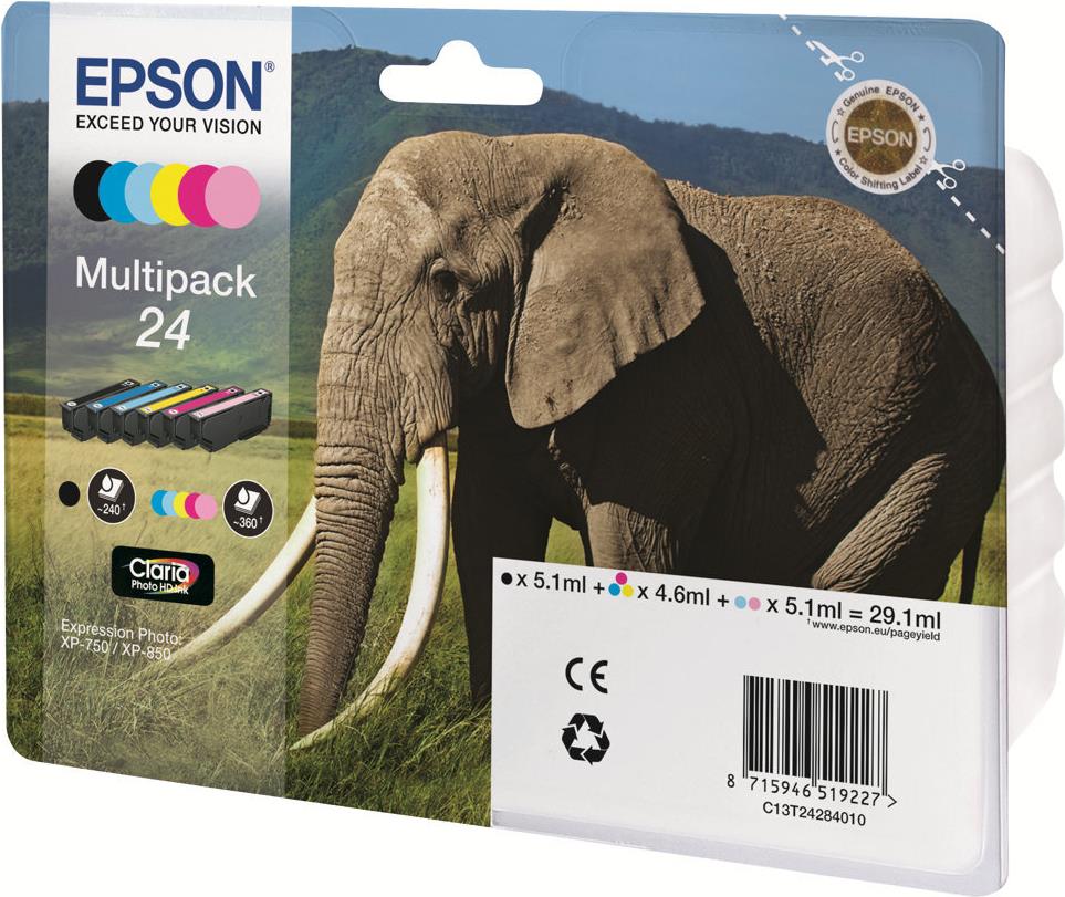 | Produktbeschreibung | Epson 24 Multipack - 6er-Pack - Schwarz, Gelb, Cyan, Magenta, hell Magenta, hell Cyan - Original - Tintenpatrone |