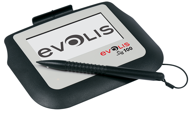 Anhand der Signature-Pads Sig100 können Sie über einen Evolis-Kartendrucker und einen Computer die Unterschrift direkt in das Design der Karte einfügen und somit das Sicherheitsniveau Letzterer erhöhen.