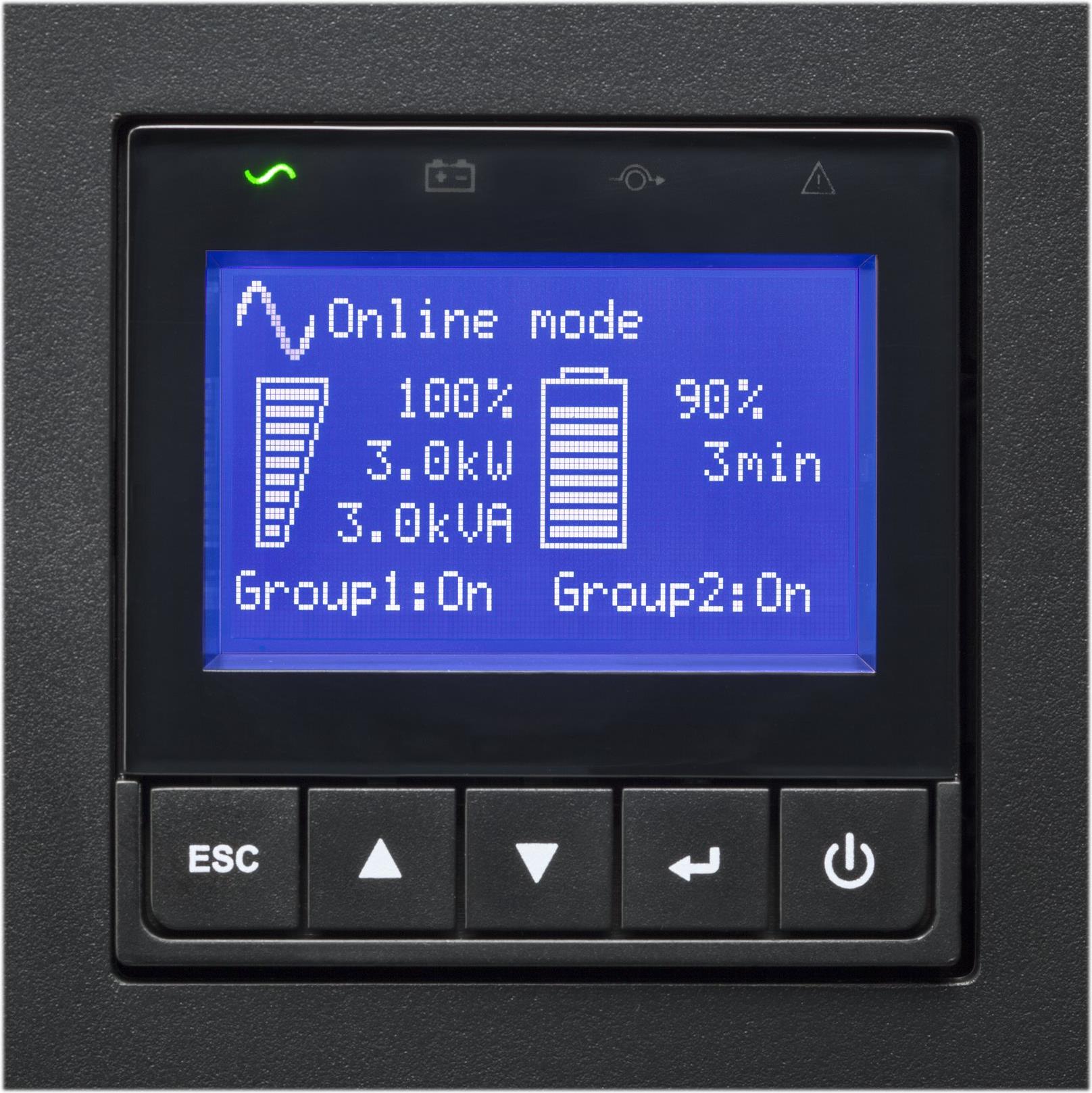 | Besonderheiten | Advanced Battery Management (ABM), LCD Anzeige, LED-Anzeiger, Kaltstartfunktion, automatischer Selbsttest, Remote Emergency Power Off (REPO) |