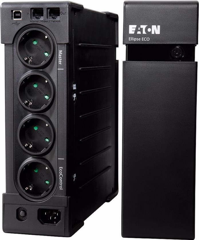 Die Eco Control-Funktion deaktiviert Peripheriegeräte automatisch, wenn das Master-Gerät ausgeschaltet wird, um bis zu 20 % mehr Energie im Vergleich zur vorherigen Generation der USV zu sparen. Dieses Modell kann entweder horizontal, im 19-Zoll-Rack oder an der Wand montiert werden. Die Ellipse Eco enthält auch die Eaton Intelligent Leistung Manager Software (als Download erhältlich). Ellipse ECO ist ein idealer Schutz für alle Computer und elektronischen Geräte in einer Büroumgebung.