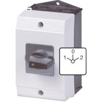 Wendeschalter Aufbau 3polig 20 ATechnische Daten: Anschluss (Bauelemente): SchraubenAufdruck-Motiv: 1/0/2Betätigungsart: KnebelFarbe Gehäuse/Knopf: Grau, SchwarzFunktionen (Schalter/Taster): rastendInhalt: 1 St.Leistung: 6.5 kWMontageart: DIN-SchienePolzahl: 3Produktabmessung, Breite: 80 mmProduktabmessung, Höhe: 137 mmProduktabmessung, Tiefe: 95 mmSchalter/Taster-Art (Kategorisierung): NockenschalterSchaltstrom (max.): 20 ASchaltwinkel: 2 x 60 °Typ (Hersteller-Typ): T0-3-8401/I1