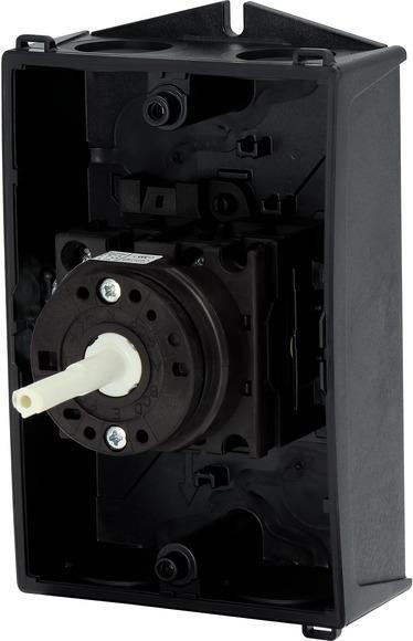 Hauptschalter AufbauTechnische Daten: Anschluss (Bauelemente): SchraubenAufdruck-Motiv: OFF/ONAusführung: Hauptschalter AufbauBetätigungsart: DrehschalterFarbe Gehäuse/Knopf: SchwarzFunktionen (Schalter/Taster): rastendGewinde-Maß: M3.5Inhalt: 1 St.Leistung: 6.5 kWMontageart: AufbauPolzahl: 3Produktabmessung, Breite: 80 mmProduktabmessung, Höhe: 137 mmProduktabmessung, Tiefe: 75 mmSchalter/Taster-Art (Kategorisierung): NockenschalterSchaltspannung: 690 VSchaltstrom (max.): 20 ASchaltwinkel: 1 x 90 °Schutzart: IP65Temperatur (max.): +50 °CTemperatur (min.): -25 °CTyp (Hersteller-Typ): T0-2-1/I1/SVB-SW