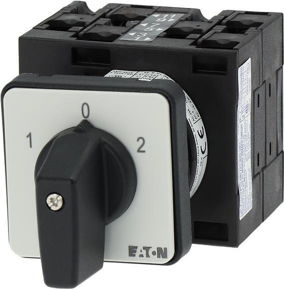 Wendeschalter Einbau 3poligTechnische Daten: Anschluss (Bauelemente): SchraubenAufdruck-Motiv: 1/0/2Ausführung: WendeschalterBetätigungsart: KnebelFarbe Gehäuse/Knopf: Grau, SchwarzFunktionen (Schalter/Taster): rastendGewinde-Maß: M4Inhalt: 1 St.Leistung: 13 kWMontageart: EinbauPolzahl: 3Produktabmessung, Breite: 48 mmProduktabmessung, Länge: 48 mmSchalter/Taster-Art (Kategorisierung): NockenschalterSchaltspannung: 690 VSchaltstrom (max.): 32 ASchaltwinkel: 2 x 30 °Schutzart: IP65Temperatur (max.): +50 °CTemperatur (min.): -25 °CTyp (Hersteller-Typ): T3-3-8401/E