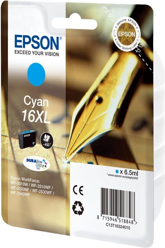 Epson 16XL - Größe XL - Cyan - Original - Tintenpatrone - für WorkForce WF-2010, WF-2510, WF-2520, WF-2530, WF-2540, WF-2630, WF-2650, WF-2660 (C13T16324010)