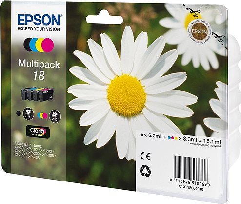 | Produktbeschreibung | Epson 18 Multipack - 4er-Pack - Schwarz, Gelb, Cyan, Magenta - Original - Tintenpatrone |