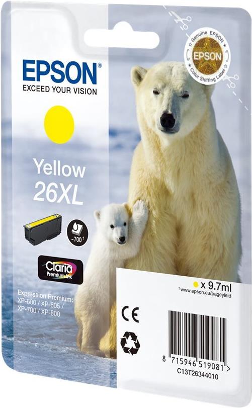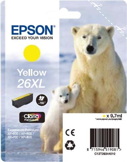 Epson 26XL - Größe XL - Gelb - Original - Tintenpatrone - für Expression Photo XP-760; Expression Premium XP-510, 520, 615, 620, 625, 710, 720, 810, 820 (C13T26344010)