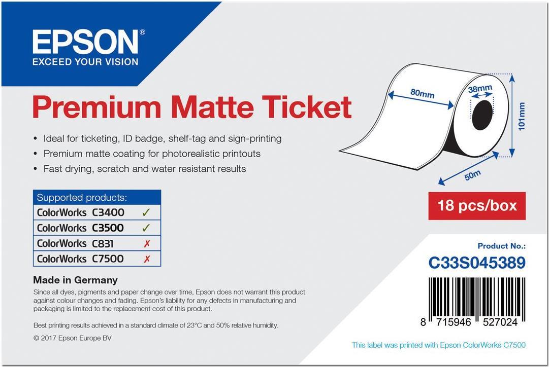 Epson Beleg- / Couponrolle (endlos), Normalpapier, 80mm Epson Beleg- / Couponrolle (endlos), Normalpapier, Premium beschichtet, seidenmatt, passt für: Epson ColorWorks C3400, Epson ColorWorks C3500, Rollenbreite: 80mm, Länge: 50m (C33S045389)