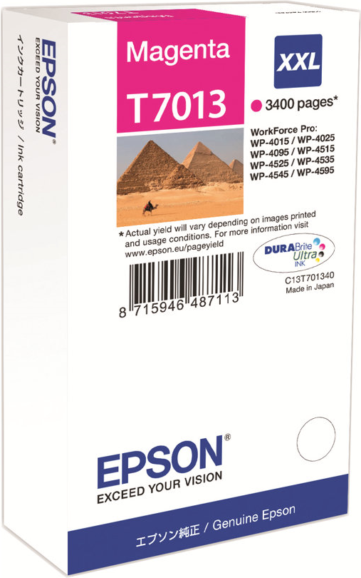 Epson T7013 - 34,2 ml - Größe XXL - Magenta - original - Blisterverpackung - Tintenpatrone - für WorkForce Pro WP-4015 DN, WP-4095 DN, WP-4515 DN, WP-4525 DNF, WP-4595 DNF (C13T70134010)