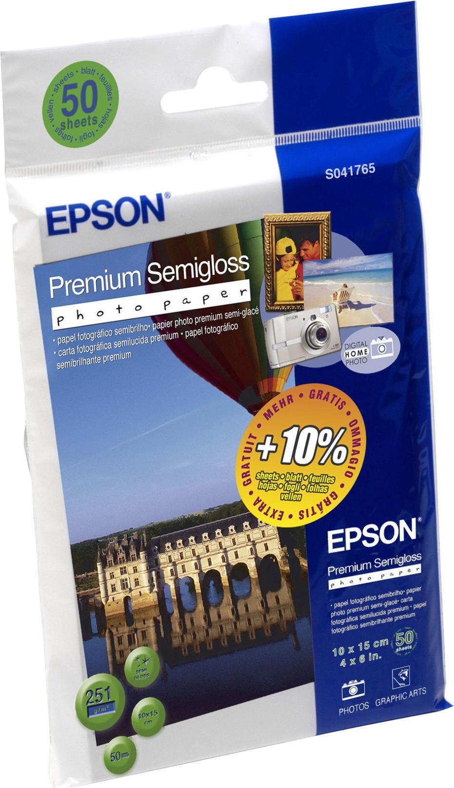 | Produktbeschreibung | Epson Premium Semigloss Photo Paper - Fotopapier - 50 Blatt - 100 x 150 mm - 251 g/m² |