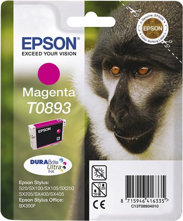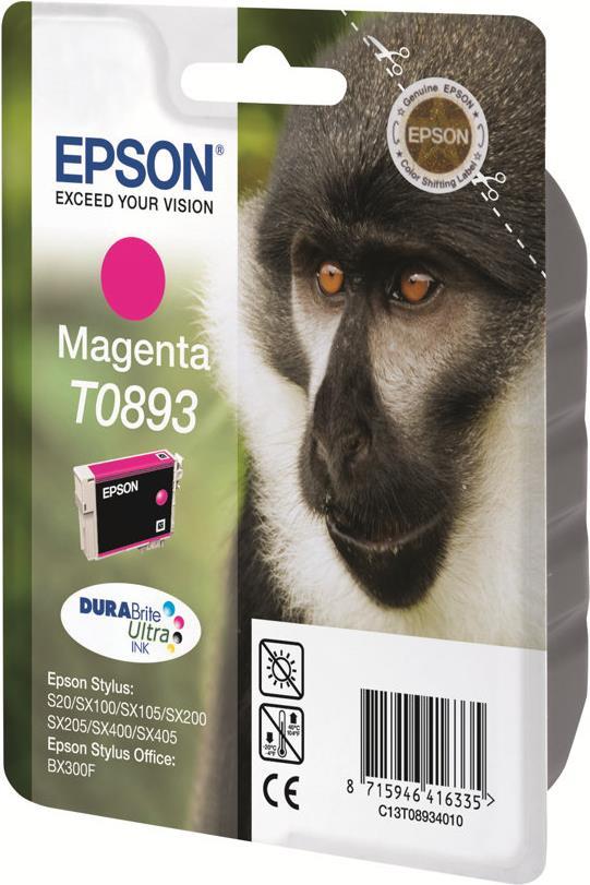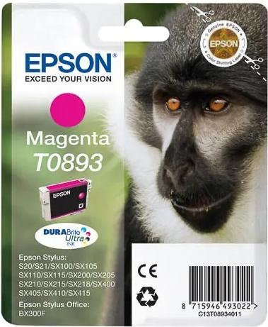 Epson T0893 - Druckerpatrone - 1 x Magenta - Blisterverpackung - für Stylus S21, SX100, SX105, SX115, SX200, SX215, SX400, SX405, SX415; Stylus Office BX300 (C13T08934011)