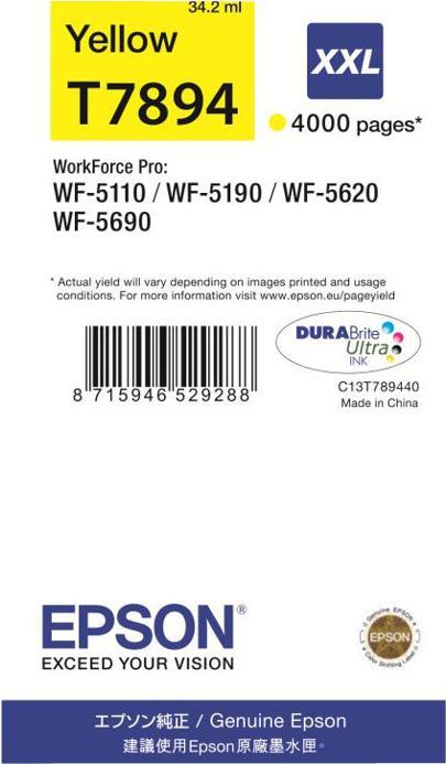 Epson T7894 - Größe XXL - Gelb - Original - Tintenpatrone - für WorkForce Pro WF-5110DW, WF-5620DWF (C13T789440)