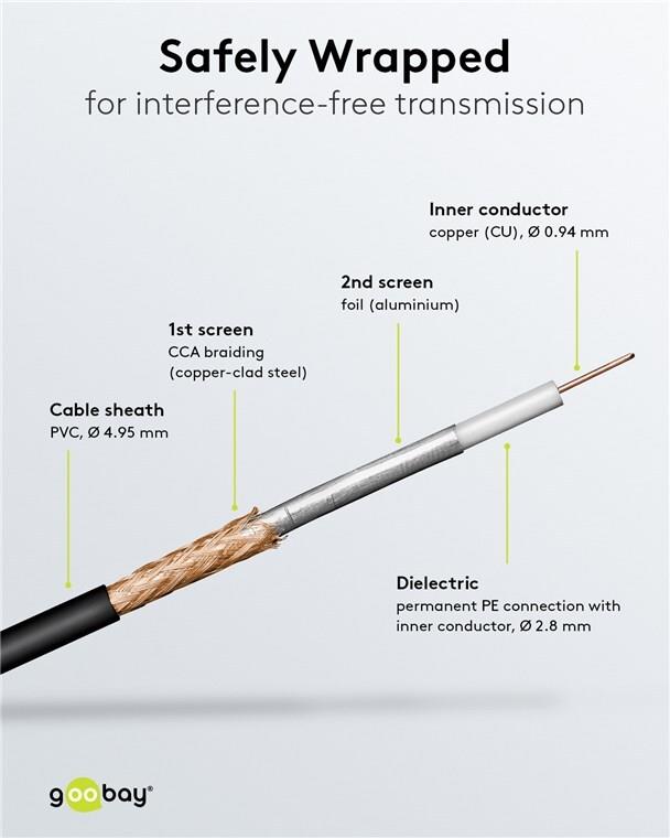 Wentronic Goobay WLAN Antennenverlängerungskabel, Schwarz, 3 m - RP-SMA Stecker > RP-SMA Buchse (51677)