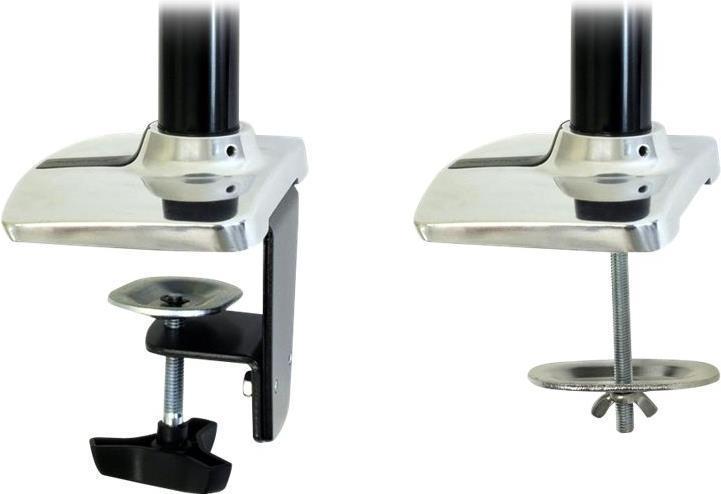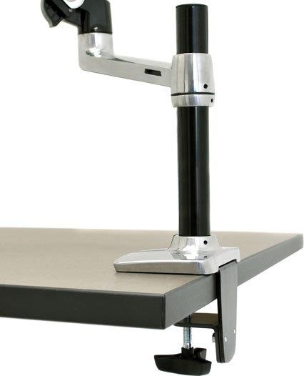 Inzwischen verwende den Standfuß nicht mehr, sondern nur den Arm und habe mir eine eigene Wandhalterung auf dem Fensterbrett geschaffen und installiert, sodaß kein Fuß sichtbar ist, weder der Ergotron-Fuß noch der monitoreigene.