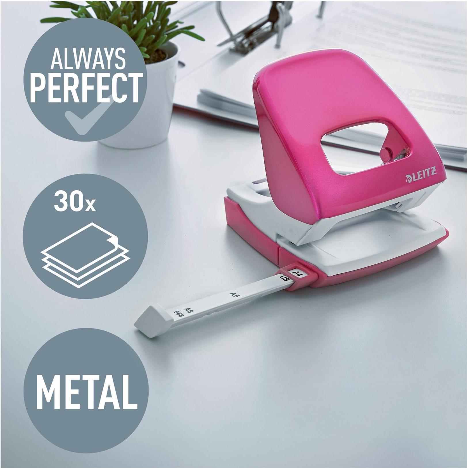 Metalllocher in auffallenden WOW Farben für die tägliche Nutzung. Stabil und zuverlässig. Locher mit patentierter, ergonomischer Griffmulde und ultra-scharfen Lochstempeln für weniger Kraftaufwand.