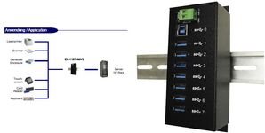 EXSYS GmbH 7 Port USB 3.2 Gen1 Metall HUB mit 15KV ESD Überspannungs-Schutz (Din-Rail) (EX-1187HMVS)