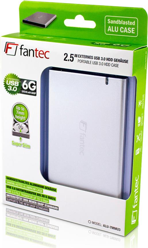 FANTEC ALU-7MMU3 - Speichergehäuse - 6,4 cm (2.5") - SATA 6Gb/s - 5GBps - USB3.0 - Silber (1784)