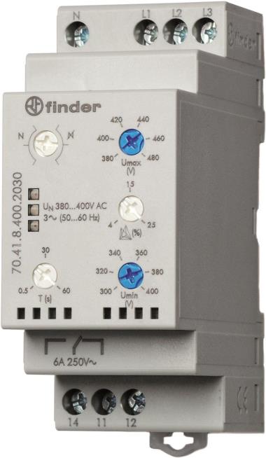 Finder Netzüberwachungsrelais 70.41.8.400.2030 70.41.8.400.2030 3-Phasen-Netzüberwachung (380 - 415 V/Ac), N-Leiter-Über (70.41.8.400.2030)