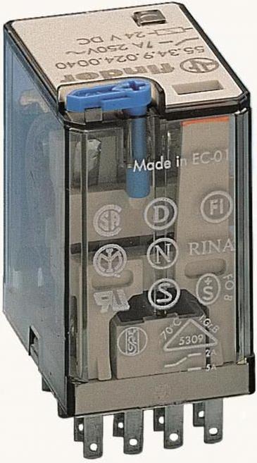 Serie 55.34 - Miniatur-Relais mit 4 WechslernAusstattung: PrüftasteMechanische Schaltstellungsanzeige.Technische Daten: Anschluss (Bauelemente): Flachstecker 2 mmAnsprechspannung (max.): 13.2 V/DCAnsprechspannung (min.): 9.6 V/DCAnsteuerart: monostabil, 1 SpuleKontaktart (LOV): 4 WechslerKontaktmaterial: AgNiNennspannung Spule: 12 V/DCProduktabmessung, Breite: 20.7 mmProduktabmessung, Höhe: 37.2 mmProduktabmessung, Länge: 27.7 mmRelais-Typ (Kategorisierung): SteckrelaisSchaltleistung (max.): 1750 VASchaltspannung (max.): 250 V/ACSchaltstrom (max.): 7 ATemperatur (max.): +85 °CTemperatur (min.): -40 °CTyp: 55.34.9.012.0040Widerstand (Spule): 140 ?Hinweis: Zulassungen: VDE, UL, CSA, RINA, GOST, FI, IMQ, S, Nemko, Semko, BEAB, B. Angaben zum Spannungs-Bereich bei 20 °C.