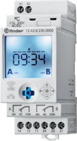 • Finder Zeitschaltuhr mit Astrofunktion, Serie 12 12.A2.8.230.0000 90 - 264 V DC/AC 2 Wechsler 16 A 250 V/AC 750 VA (12.A2.8.230.0000)