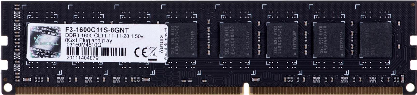 G.Skill NT Series - DDR3 - Modul - 8 GB - DIMM 240-PIN - 1600 MHz / PC3-12800 - CL11 - 1.5 V - ungepuffert - non-ECC (F3-1600C11S-8GNT)
