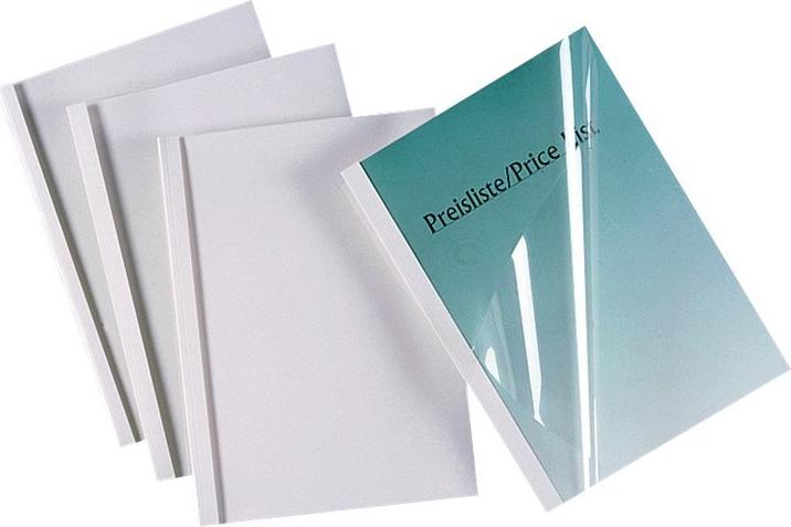 Mit den stabilen Standard Thermobindemappen sind Ihre Dokumente perfekt gebunden. Das transparente Deckblatt aus PVC bringt die Titelseite voll zur Geltung, die stabile Rückseite aus 240 g/m starkem seidenweißen Karton sorgt für Stabilität. A4, 35 mm, 50 Stück.