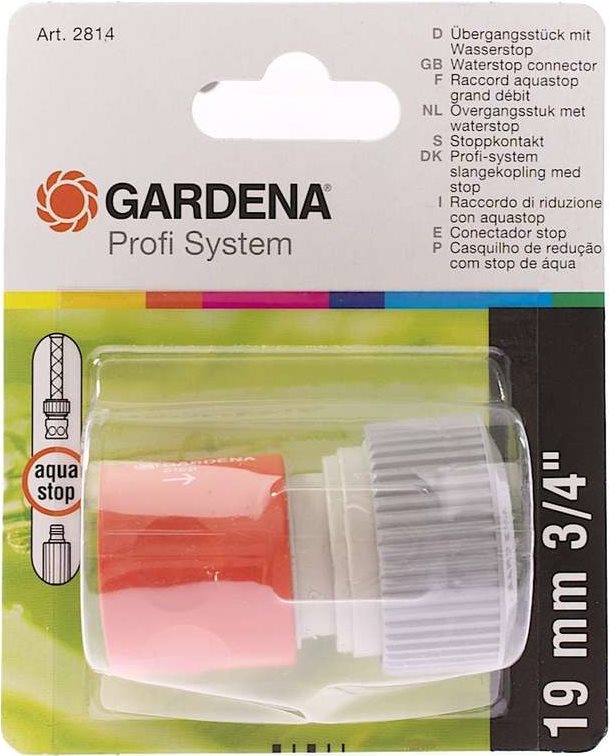 Das Gardena Profi-System-Übergangsstück mit Wasserstop ist ideal in Verbindung mit längeren Schläuchen oder bei Einsatz von Pumpen. Es dient als Anschluss am Schlauchende und funktioniert nach einfachstem Prinzip: Durch Entkuppeln stoppt das Wasser automatisch und durch Zusammenstecken wird Wasser frei. Mit diesem Übergangsstück können Sie Anschlussgeräte des Original Gardena Systems an das Profi- System anschließen.Produkttext[/head]Das GARDENA Profi-System-Übergangsstück mit Wasserstop ist ideal in Verbindung mit längeren Schläuchen oder bei Einsatz von Pumpen. Es dient als Anschluss am Schlauchende zum Übergang auf 13 mm (1/2“)- Schläuche mit Kupplung (Art.-Nr. 931) und funktioniert nach einfachstem Prinzip: Durch Entkuppeln stoppt das Wasser automatisch und durch Zusammenstecken wird Wasser frei. Dank dieses praktischen Mechanismus wird der oft lästige und weite Weg zum Wasserhahn erspart, um dort das Wasser auf- oder abzudrehen. Mit diesem Übergangsstück können Sie Anschlussgeräte des Original GARDENA Systems an das Profi- System anschließen.[head]Hauptmerkmale