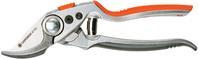 Die GARDENA Premium Alu-Gartenschere B+/L ist eine hochwertige Gartenschere für Liebhaber solider Schneidwerkzeuge. Die besonders stabilen Aluminium-Profilgriffe liegen gut und ergonomisch in der Hand. Das Obermesser ist aus Edelstahl und präzisionsgeschliffen, das Untermesser wurde geschmiedet und kann nachgeschliffen werden. Dank der zwei Griffpositionen an den Profilgriffen können sowohl Kraft- als auch Schnellschnitte gemacht werden. Die Gartenschere hat eine Saftrille und einen Drahtabscheider. Mit Hilfe des Einhand-Sicherheitsverschlusses kann die Schere einfach verschlossen und sicher aufbewahrt werden. Die Garantiezeit beträgt 25 Jahre. Einen besonders präzisen Schnitt von Blumen, Zweigen und Ästen ermöglichen die auswechselbaren Messer dieser hochstabilen Profi-Gartenschere. Die Schere hat ein einstellbares Gewerbe und einen geneigten Schneidkopf. Der maximale Schneiddurchmesser für Äste beträgt 24 mm.