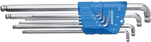Gedore 2797186 Innen-Sechskant Winkelschraubendreher-Set 8teiligWinkelschraubendreher-Satz XL, Doppelkugelkopf im Halter 8-tlg 2-10 mmWinkelschraubendreher mit zwei Kugelköpfen und extra kurzer Winkelseite für optimales Arbeiten auf engste