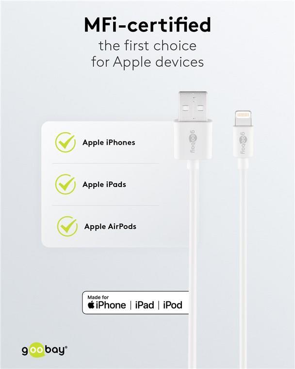 Wentronic Goobay USB Lade- und Synchronisationskabel, Weiß, 1 m - MFi Lade- und Synchronisationskabel für Apple iPhone/iPad (Weiß) (54600)