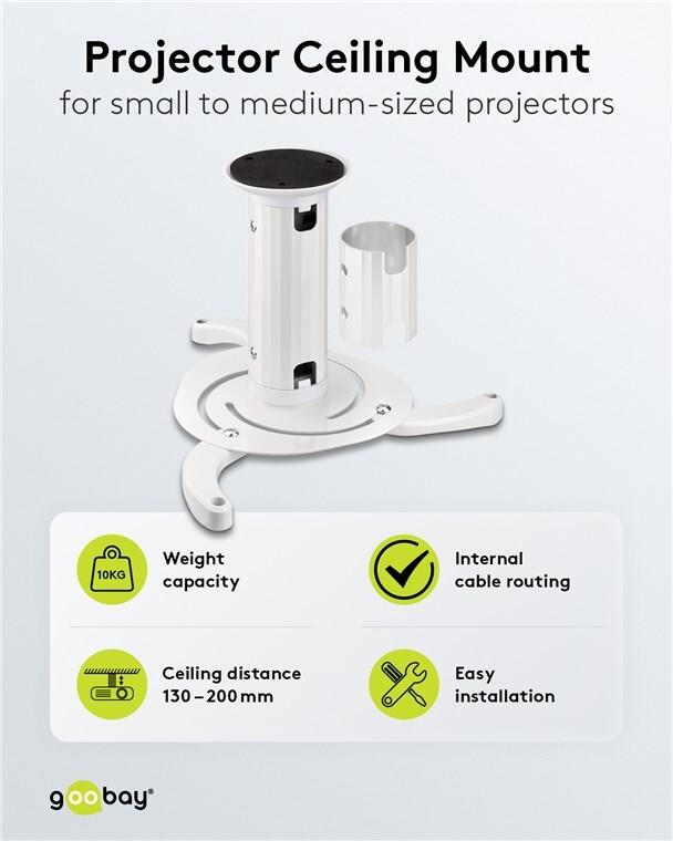 Wentronic Goobay BeamerFlex - Befestigungskit (Deckenmontage, 2 Stangen, Schnittstellengabel) - für Projektor - weiß - Deckenmontage (51896)