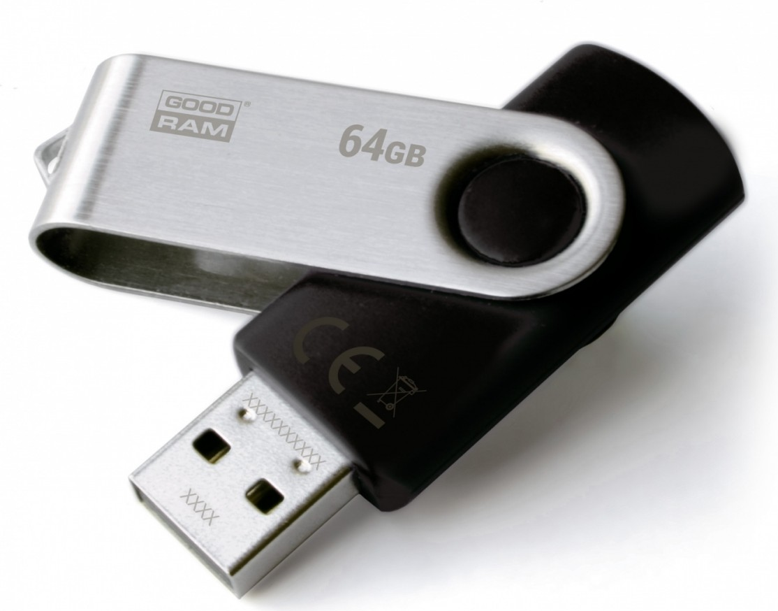Goodram 64GB USB 2.0 - USB 2.0 - Typ A - Mac OS X 10.5 Leopard - Mac OS X 10.6 Snow Leopard - Mac OS X 10.7 Lion - Mac OS X 10.8 Mountain Lion - - Drehring - Schwarz - Silber - Schockresistent - Röntgenstrahlenbeständig (UTS2-0640K0R11)
