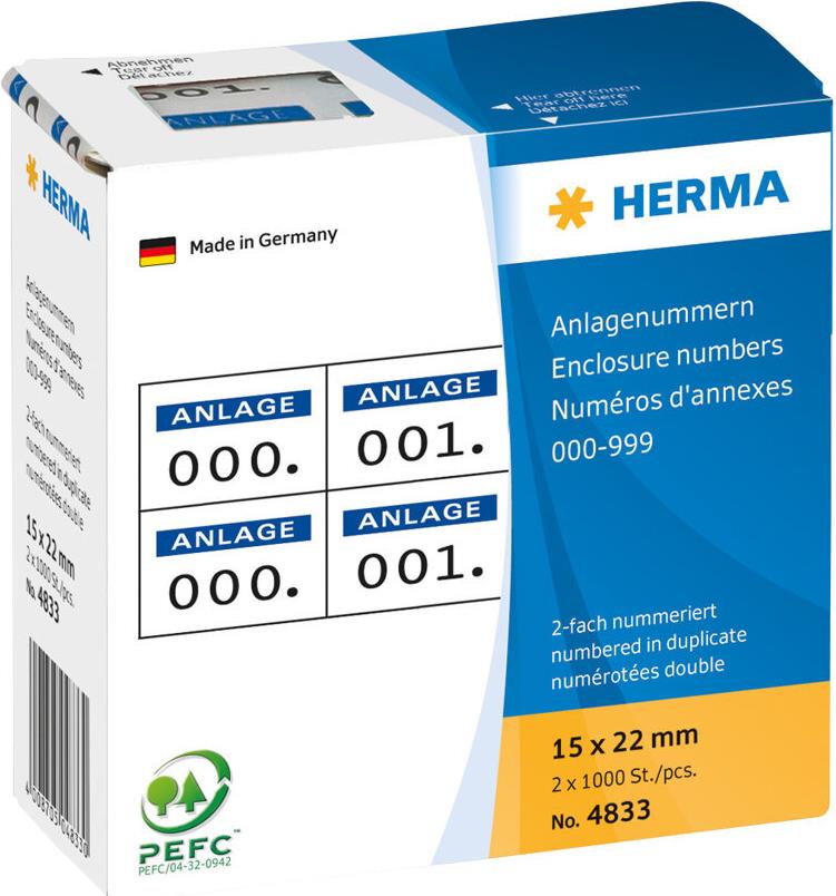 HERMA - Selbstklebende Nummernetiketten - Weiß/Dunkelblau - 15 x 22 mm - 2000 Etikett(en) (1000 Bogen x 2) (4833)