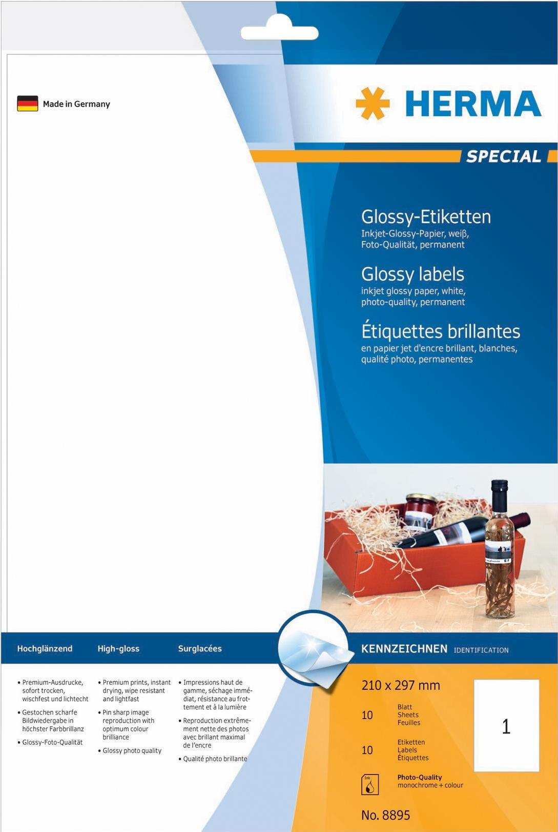HERMA InkPrint - Selbstklebende Etiketten, glänzend - weiß - A4 (210 x 297 mm) - 10 Stck. (10 Bogen x 1) (8895)