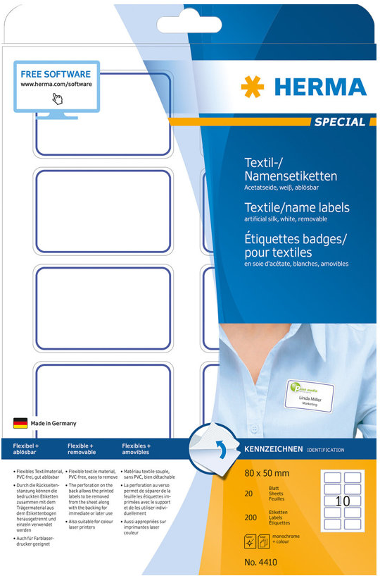 HERMA Special - selbstklebende, abziehbare Namensschildetiketten aus Kunstseide - 200 Etikett(en) |