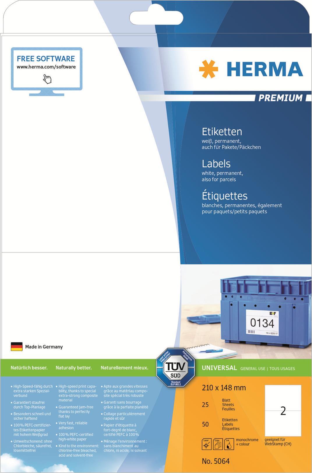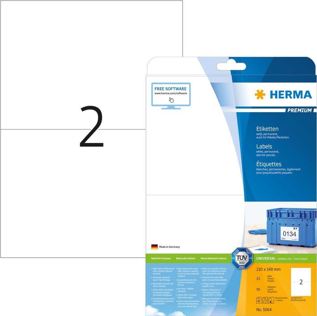 HERMA Premium - Permanent selbstklebende, matte laminierte Papieretiketten - weiß - 210 x 148 mm - 50 Etikett(en) (25 Bogen x 2) (5064)