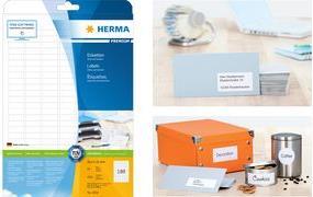 Selbstklebende Etiketten auf A4-Blättern, permanent haftend. Perfekt für alle Laser- und Inkjetdrucker, Kopierer, Farblaserdrucker und Farbkopierer. Garantiert staufrei und high-speed-fähig durch extra starken Spezialverbund, Top-Planlage und Rundum-Sicherheitskante. Problemloser Druckerdurchlauf für Laserdrucker und Inkjetdrucker getestet und bestätigt durch den TÜV SÜD. Hoher Weißgrad und gleichmäßige Oberfläche für beste Druckergebnisse in Schwarz und Farbe. Spürbar dicker: extra starke Etiketten - einfaches Aufkleben. Besonders schnell und sicher haftend, auch auf kühlen und feuchten Oberflächen. Umweltschonend und nachhaltig: chlorfrei gebleicht, PEFC-zertifiziert, lösemittelfreier Haftkleber. Etiketten sind 100 % recyclingfähig mit dem Altpapier, Verpackung aus Recyclingkarton. Kostenlose Softwarelösungen: www.herma.de/software.