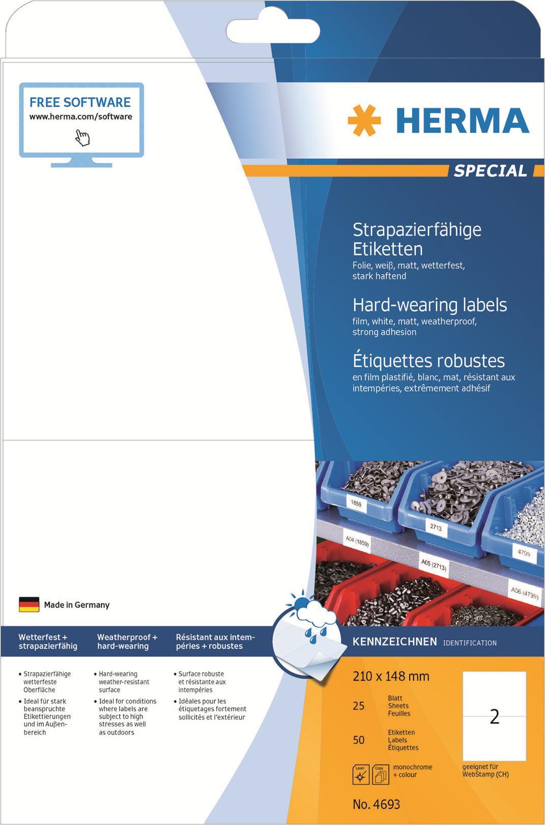 HERMA Special - Permanent selbstklebende, matte Folienetiketten - weiß - 210 x 148 mm - 50 Etikett(en) (25 Bogen x 2) (4693)