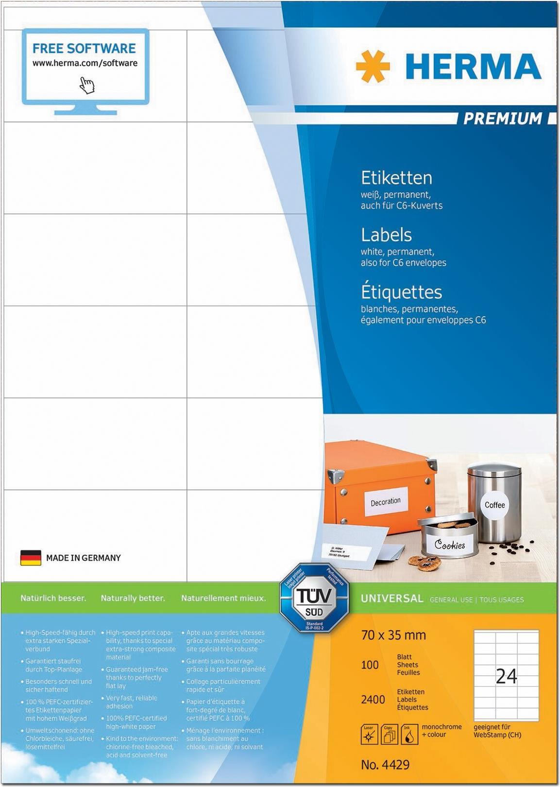 HERMA SuperPrint - Etiketten - weiß - 35 x 70 mm - 2400 Stck. (100 Bogen x 24) (4429)