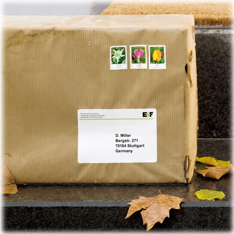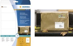 Versandetiketten aus weißer Polyesterfolie, auf A4-Blättern, selbstklebend. Robust und strapazierfähig - bei jedem Wetter lesbar. Sicher haftend auf allen Verpackungsmaterialien: Kuverts, Pakete, Versandrollen, Folien, PE und Tyvek. Strapazierfähige wetterfeste Oberfläche, besonders stark haftend, Schmutz abweisend, reißfest, temperaturbeständig, seewasserfest. Störungsfreie Verarbeitung durch Rundum-Sicherheitskante und optimale Planlage. Für Laserdrucker und Kopierer, Farblaserdrucker und Farbkopierer. Nicht für Inkjetdrucker geeignet. Kostenlose Softwarelösungen: www.herma.de/software.